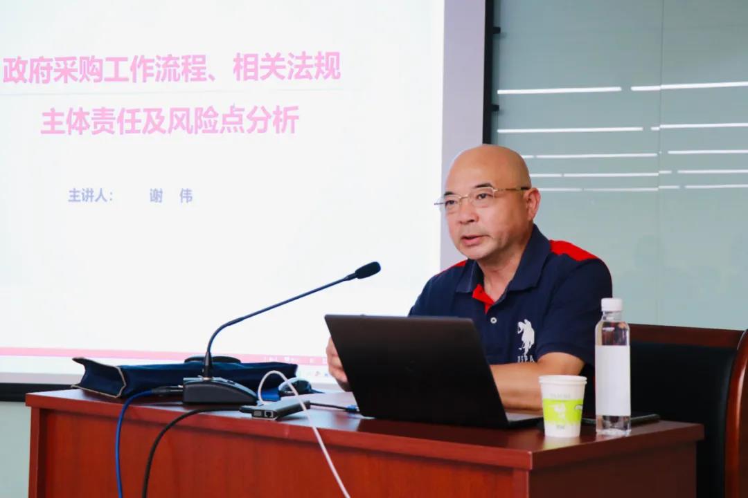 蘇州市行政審批局公共資源交易管理處處長、蘇州市安防協(xié)會監(jiān)事謝偉圍繞“政府采購工作流程、相關(guān)法規(guī)主體責任及風險點分析”展開授課。